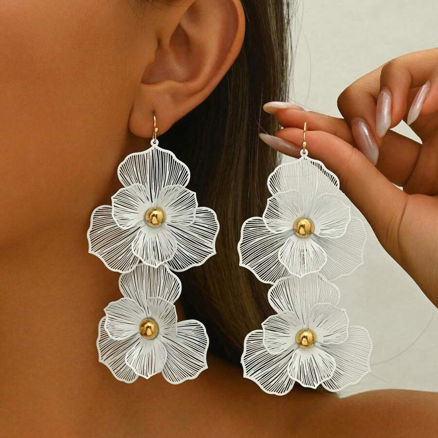 New Flower Earrings Petals Hot Summer Candy Color Long Temperament Ear Hook Color Earrings