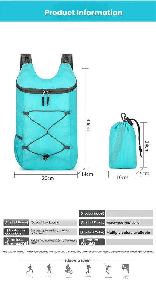 Nouveau sac pliable pour l'extérieur : ultra-léger, compact, idéal pour les voyages/la salle de sport, cadeau idéal