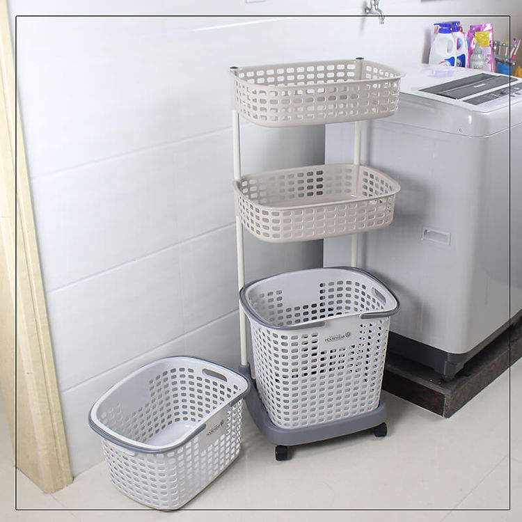 Nouveau Panier à Linge Roulant Pliable, Organisateur en Plastique 2/3 Niveaux pour Salle de Bain et Vêtements Sales