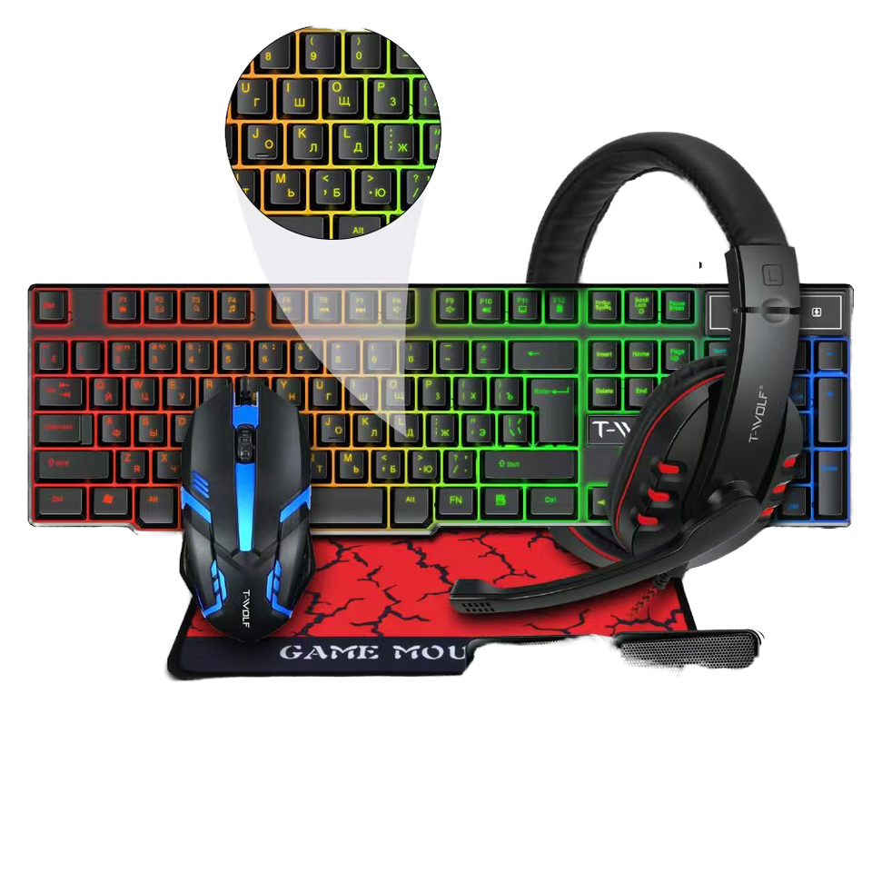 Nouvel ensemble 4-en-1 pour joueurs, clavier USB rétroéclairé RVB 104 touches, souris, tapis de souris, casque, combo mobile tout-en-un