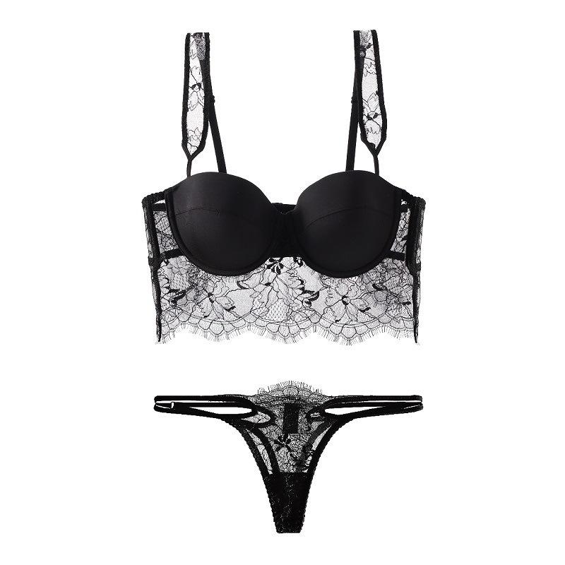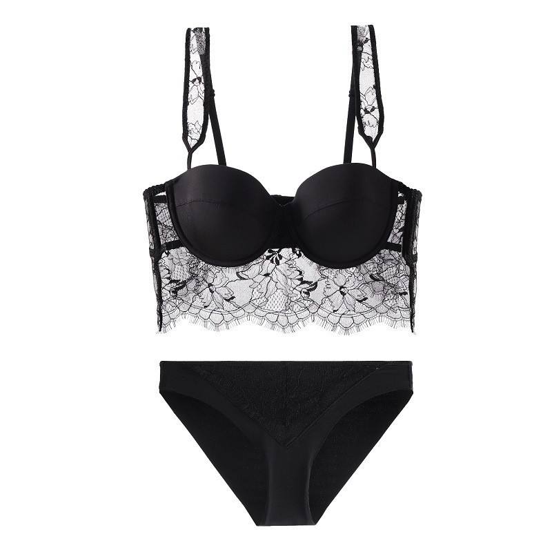 Nouvel ensemble de lingerie en dentelle brodée style français, fin et sexy, avec soutien-gorge push-up et culotte 2 pièces pour femme