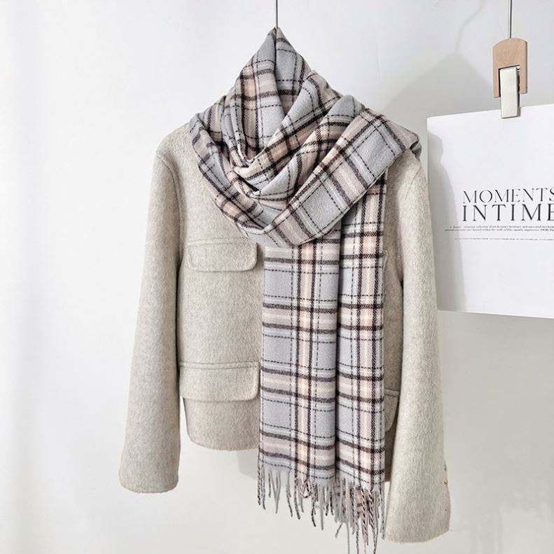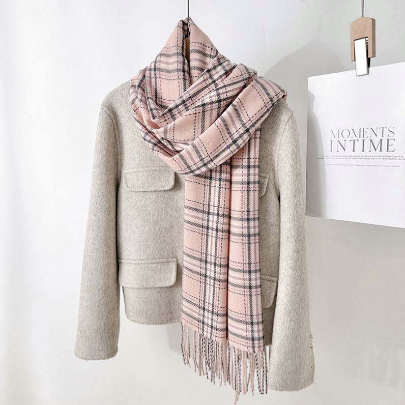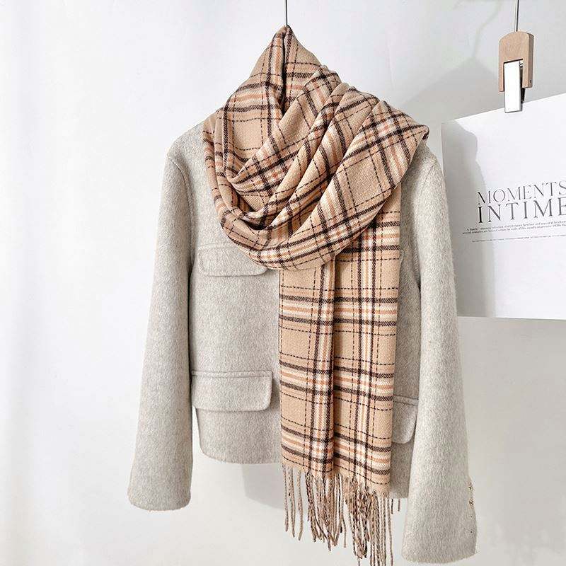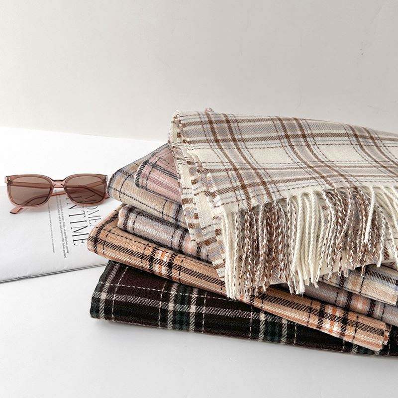 Nouvelle Écharpe Châle en Cachemire Tendance Style Frais Automne Hiver, Plaid Simple Chaud avec Pompons YHK0023