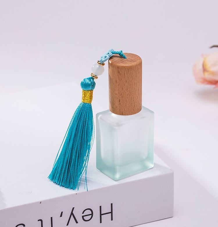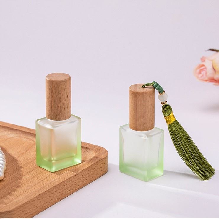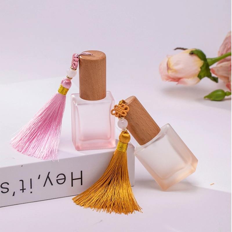 Nouveau flacon de recharge de parfum coloré de 10 ml avec bouchon en bois de hêtre portable, flacon en verre à bille, flacon givré