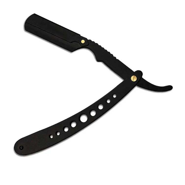 Nouveaux rasoirs de rasage enduits de couleur noire poignée de fantaisie avec trou lame unique rasage hommes rasoirs pliables couteaux de rasage