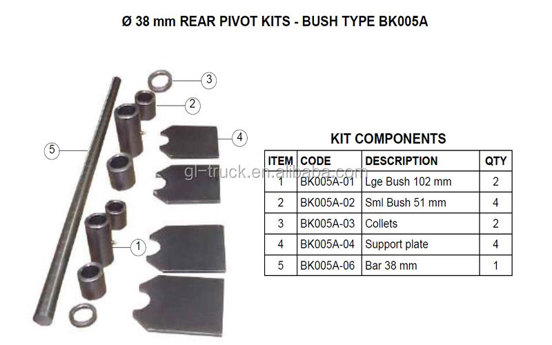 Nouveaux kits de pivot arrière GL-25400, type douille de 38 mm pour remorques de camions