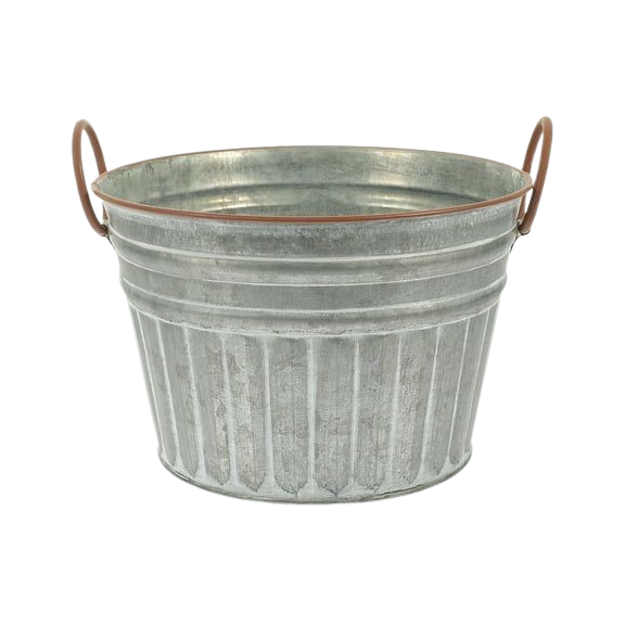 Nouveau pot de fleurs galvanisé avec poignée latérale, design antique, panier à fleurs rond pour la décoration d'hôtel, fabriqué à la main en gros