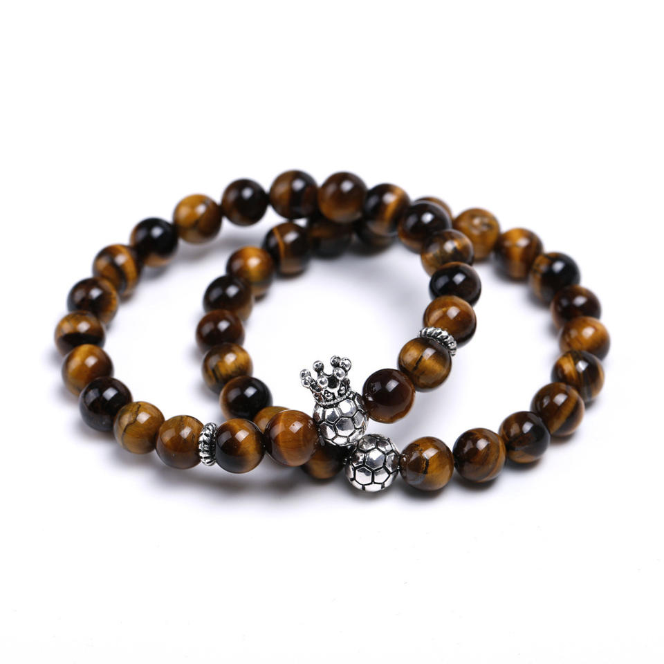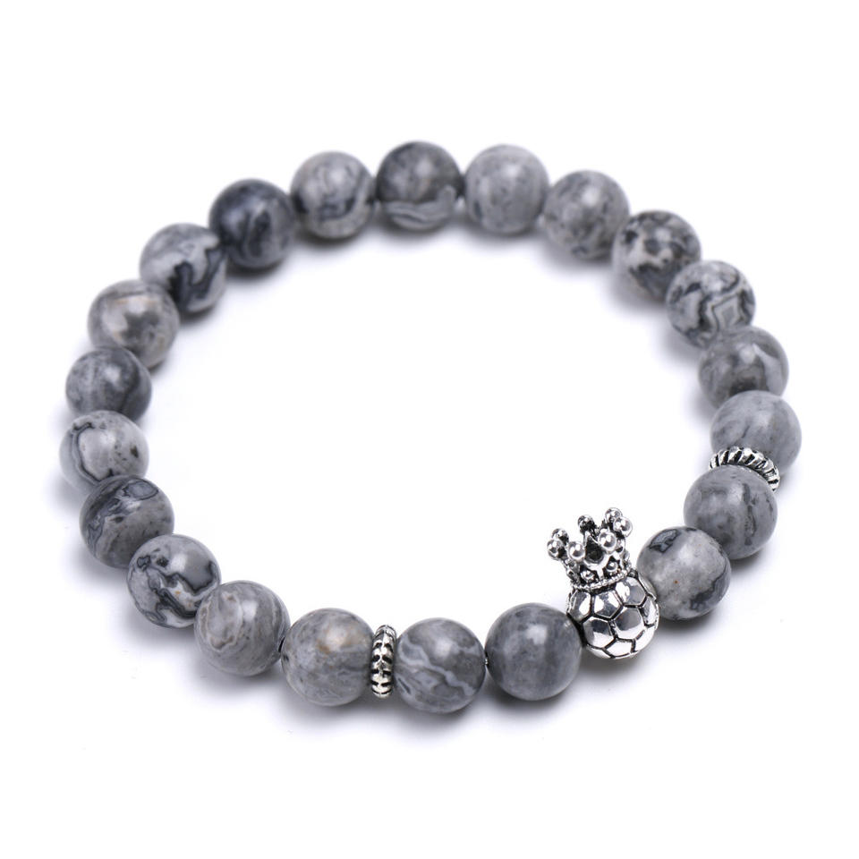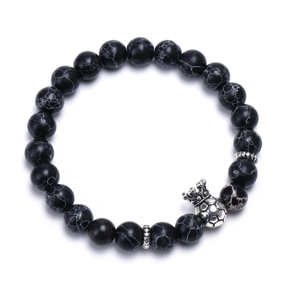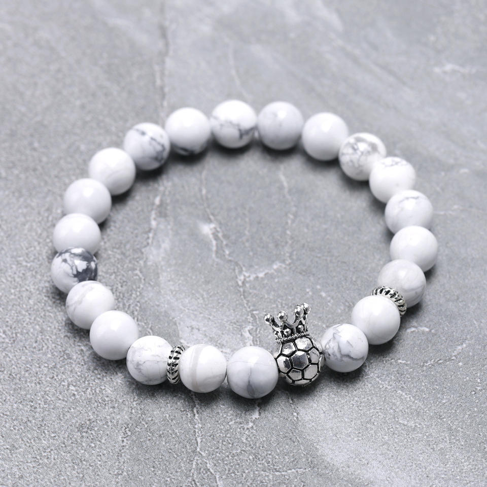 Bracelet de compétition de Football pour hommes, couronne de balle, breloques en pierre naturelle, Bracelet de Football pour les Fans de Football, cadeaux