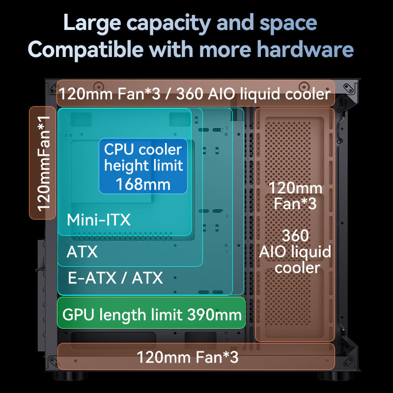 Refroidissement liquide supérieur 360 / Refroidissement liquide arrière 120