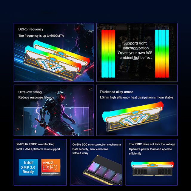 New Gaming Memory Ddr5 Ecc 64gb RGB ram Ddr 5 2X16GB 32GB 7200Mhz 5600Mhz Ddr 5 ram for Pc Components in Stock