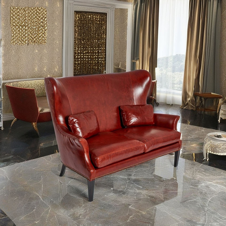 Nouveau canapé d'angle deux places en cuir véritable - Design minimaliste, structure en bois massif, mobilier d'extérieur pour hôtel et salon