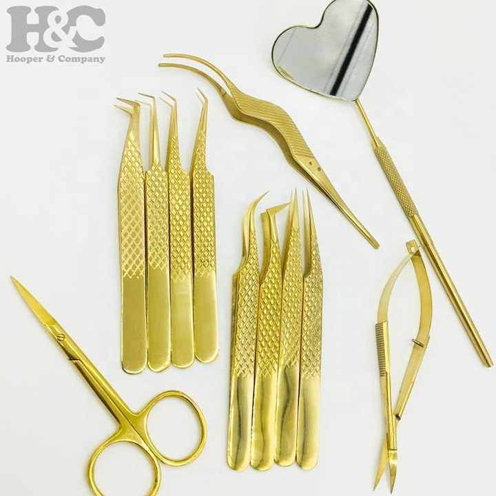 Nouvel ensemble professionnel de pinces à cils en acier inoxydable style vison doré, anti-magnétique, outil durable pour extensions de cils, personnalisable