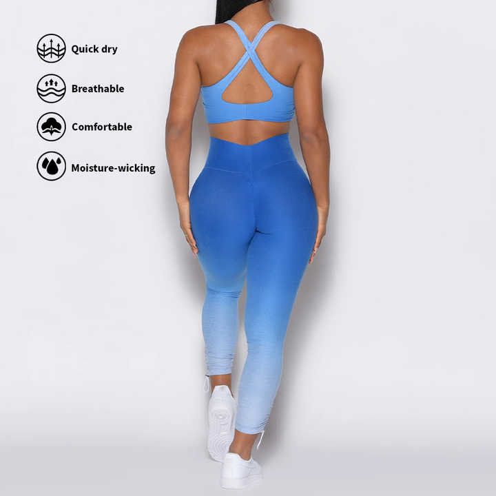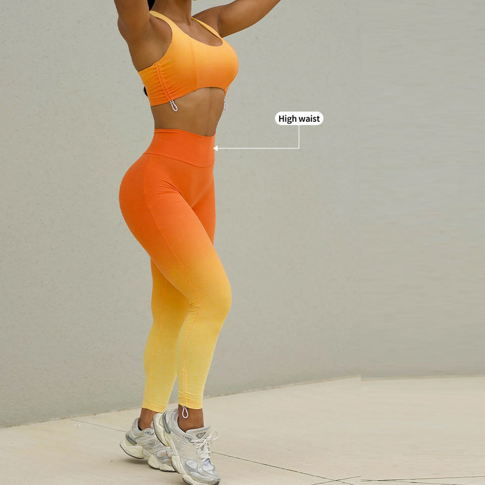 Nouveau dégradé personnalisé Yoga vêtements Acticewear débardeur haut court bout à bout Leggings Gym Fitness ensembles pour femmes vêtements de sport d'entraînement