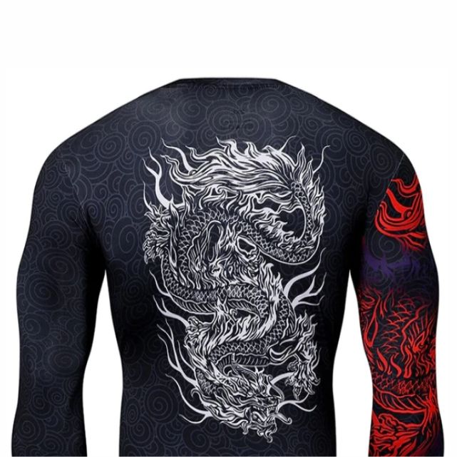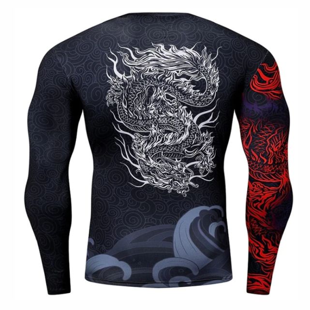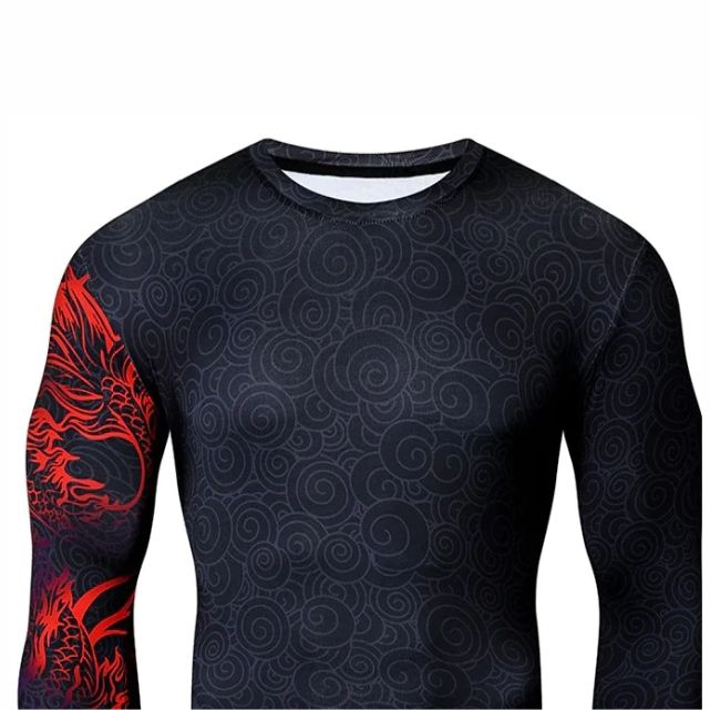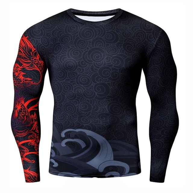 Nouveau Rash Guard de Grappling Jiu Jitsu MMA pour Hommes BJJ Boxe Anti-UV UPF50+ Maillots Respirants Vêtements de Sport