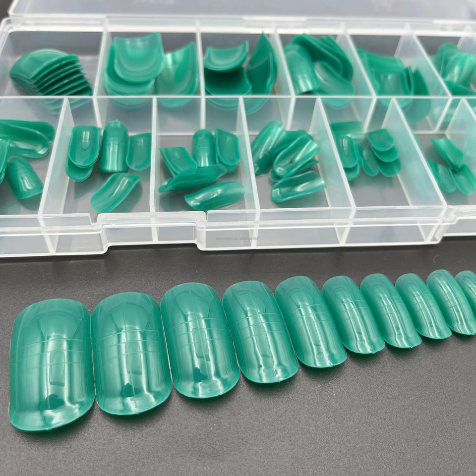 Nouveau vert large orteil court ongles Extension Capsule moule Popit français double forme ongles conseils
