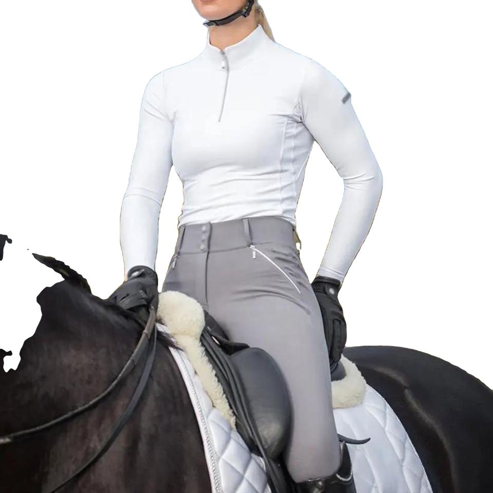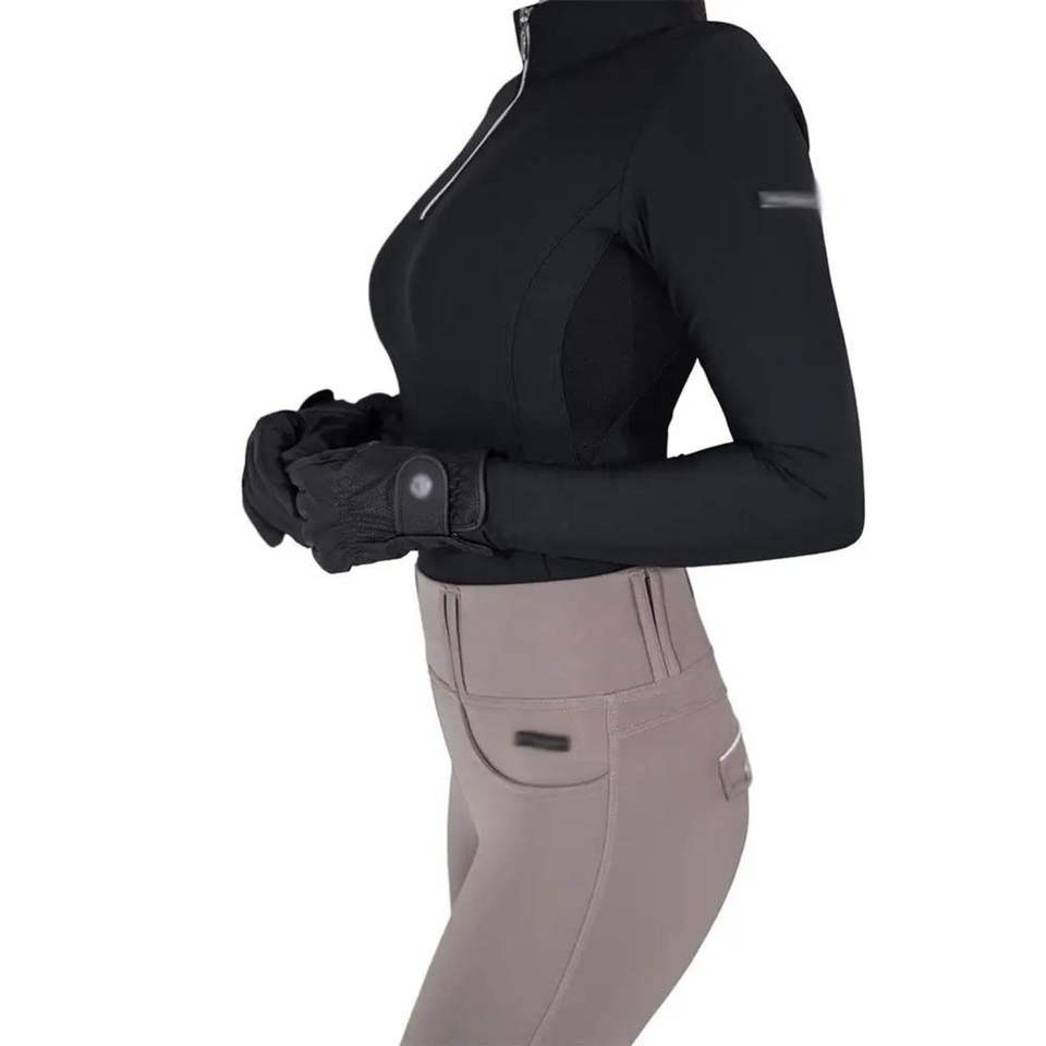 Nouveau demi fermeture éclair chemise d'équitation pour dames équine élégant à manches longues équestre couche de Base vêtements équestres hauts