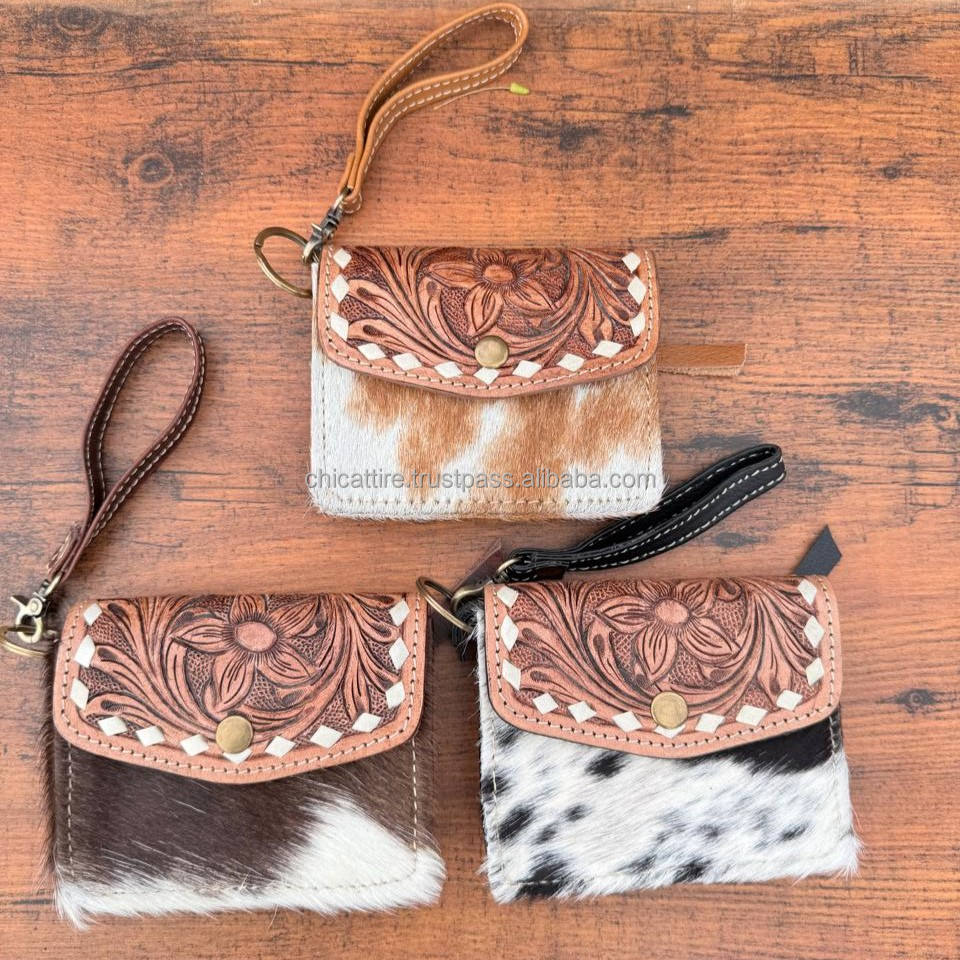 Nouveau main usiné sculpture petit bracelet porte-monnaie cheveux occidentaux sur cuir de vachette multi utilisations Mini portefeuille pour les femmes