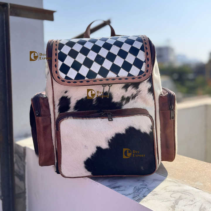 Nouveau sac à dos en cuir artisanal avec fourrure de vache, motif à carreaux, sacs d'école élégants, sacs unisexes, sac de créateur unique