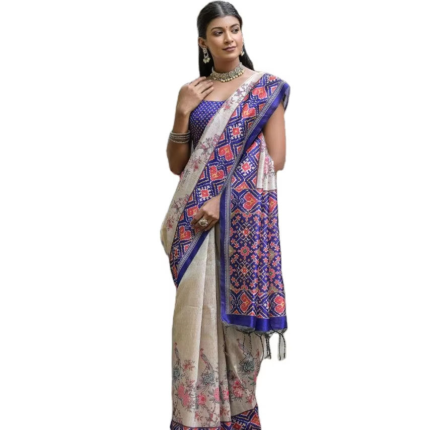 Nouveau Handloom Tussar Soie Belle Broderie Élégant Mariage Convient Patola Imprimé Saree pour les Femmes Élégant Vêtements De Mode