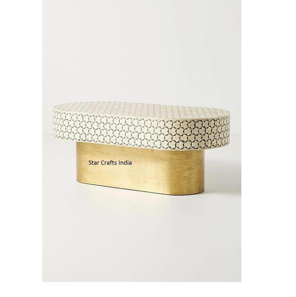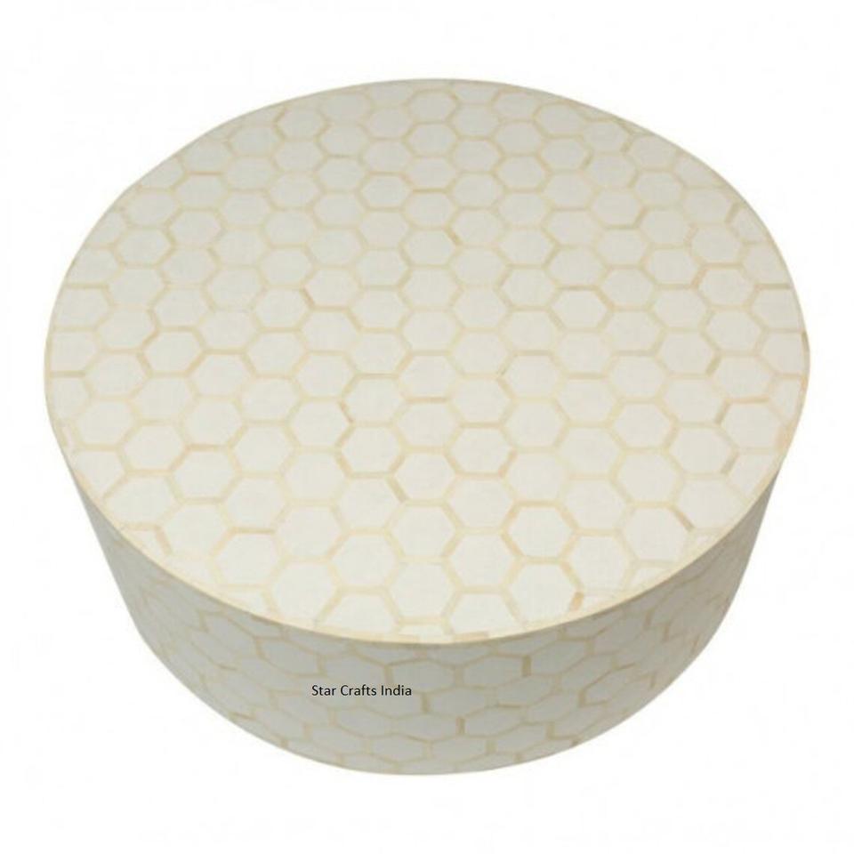 Nouveaux meubles faits à la main forme ronde en bois avec table incrustée d'os prix usine indien incrustation d'os de chameau table basse incrustée d'os
