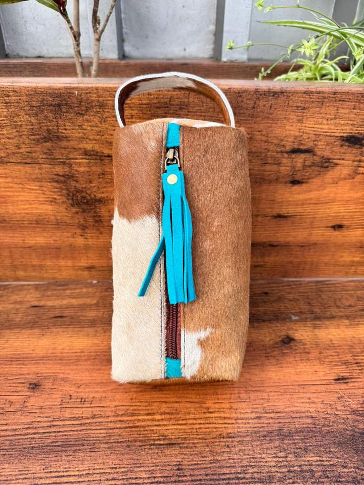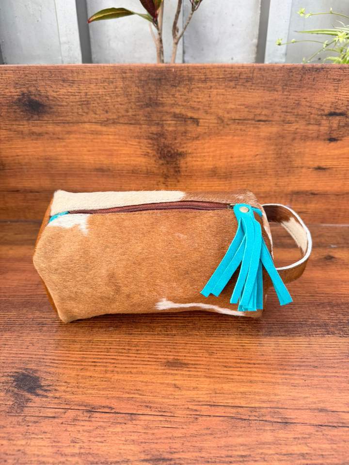 Nouveaux cheveux faits à la main sur peau de vache Turquoise gland trousse de toilette pour femmes Western en cuir véritable sacs à cosmétiques pour le stockage de maquillage