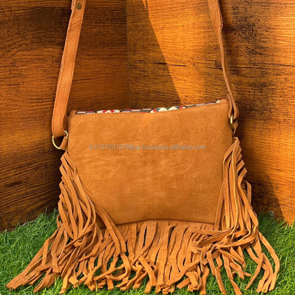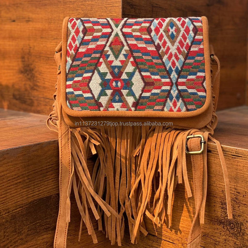 Product name:Jacquard Suede Leather Fringe Sling Bag
