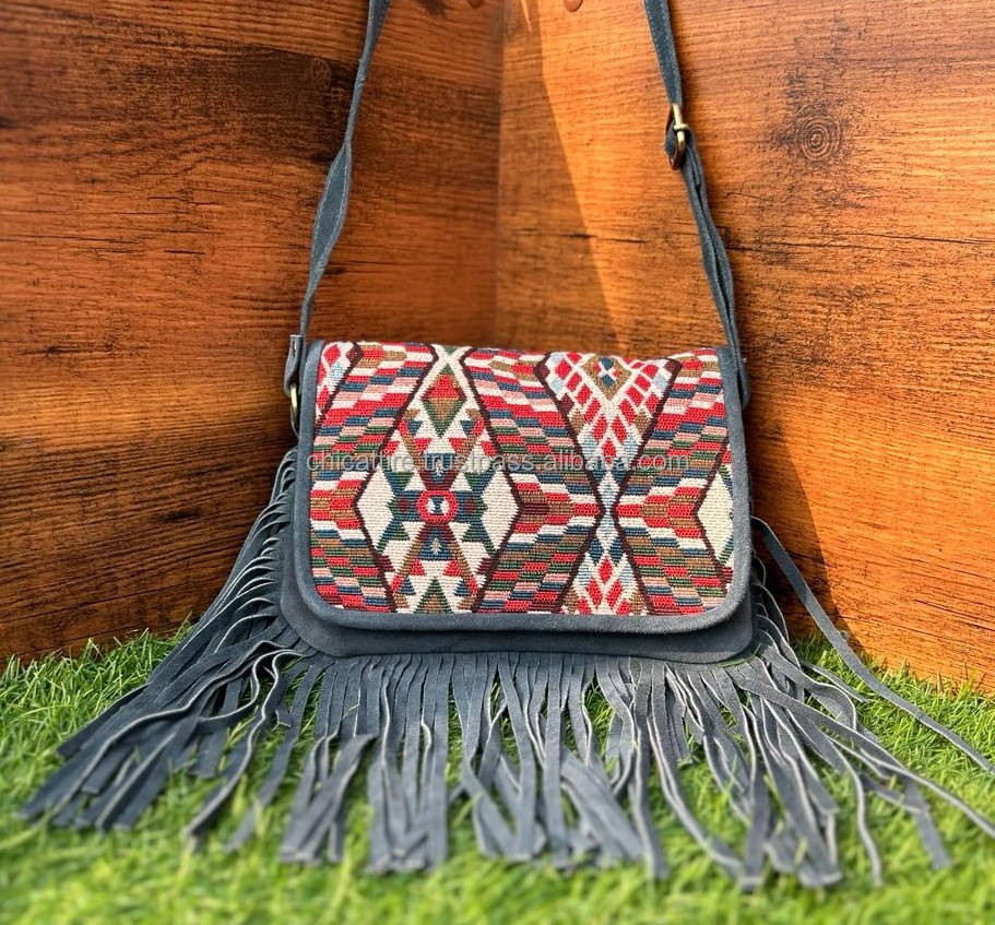 Product name:Stylish Jacquard Suede Fringe Leather Sling Bag