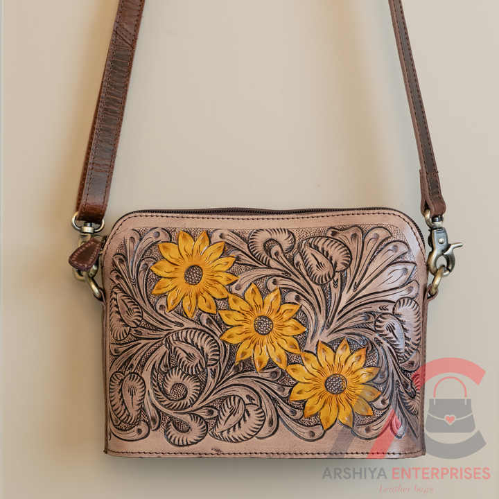 Nouveau fait à la main Western élégant en cuir repoussé femmes sac à bandoulière de haute qualité en cuir véritable tournesol sacs à main Cowgirl sacs à bandoulière