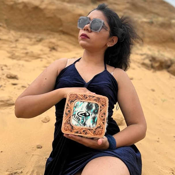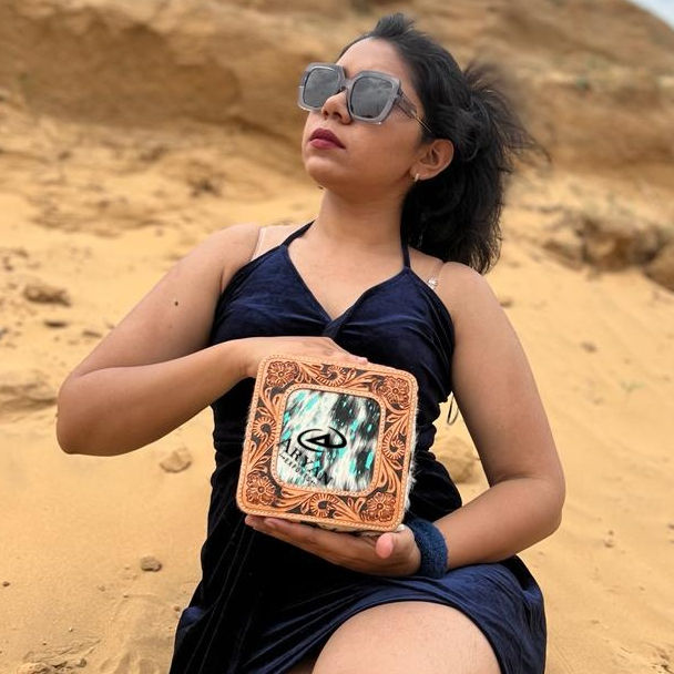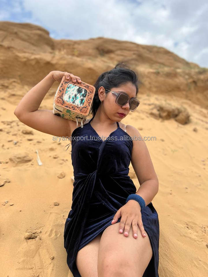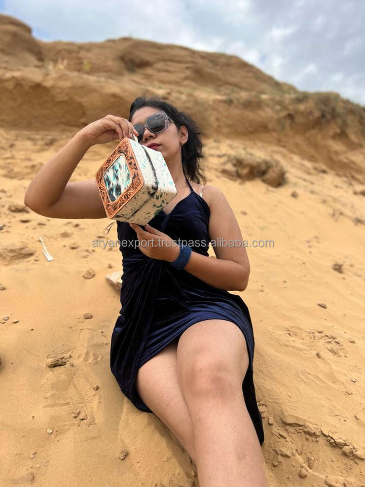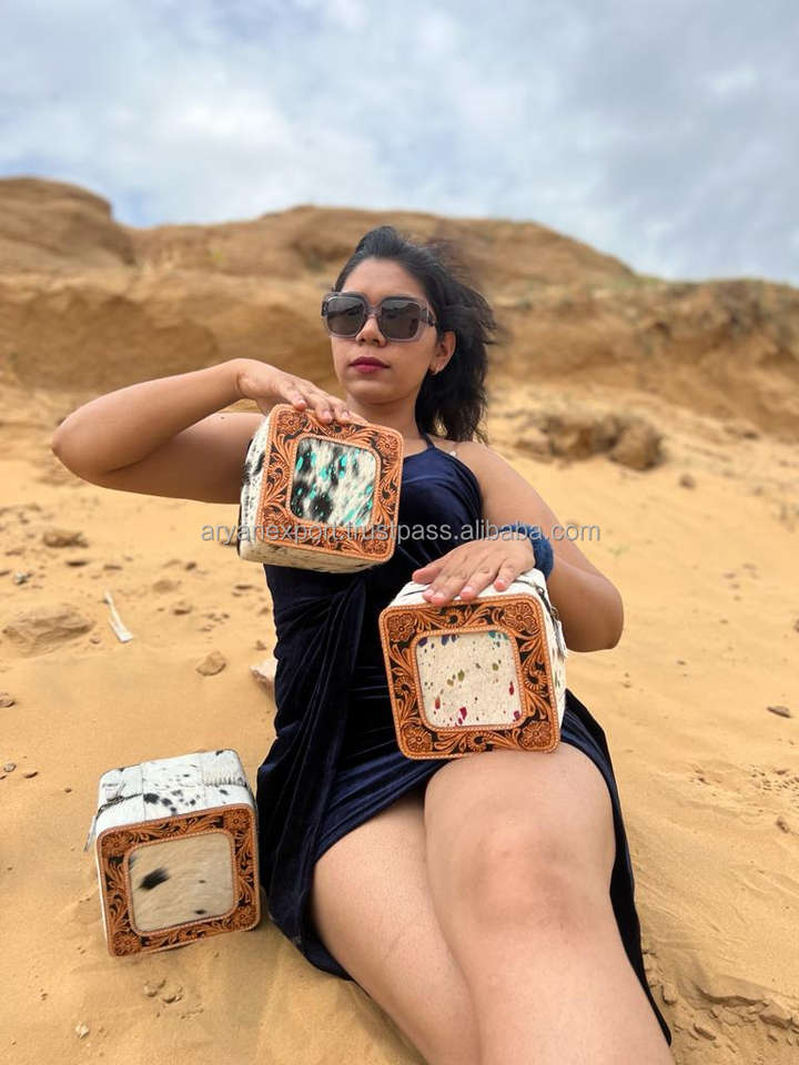 Nouveau fait à la main Western élégant outillé métallique cheveux sur cuir de vachette boîte à bijoux mignon voyage bijoux essentiel minimal stockage