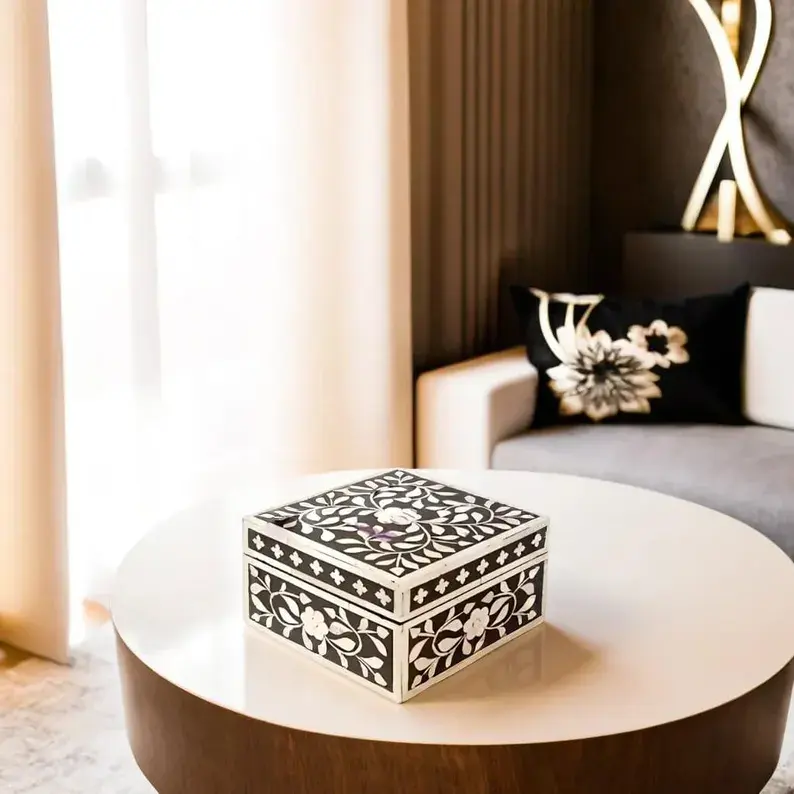 Nouvelle boîte à bijoux en bois faite à la main boîte de rangement en incrustation de résine d'os boîte de présentation de table rectangulaire pour emballage cadeau de bague