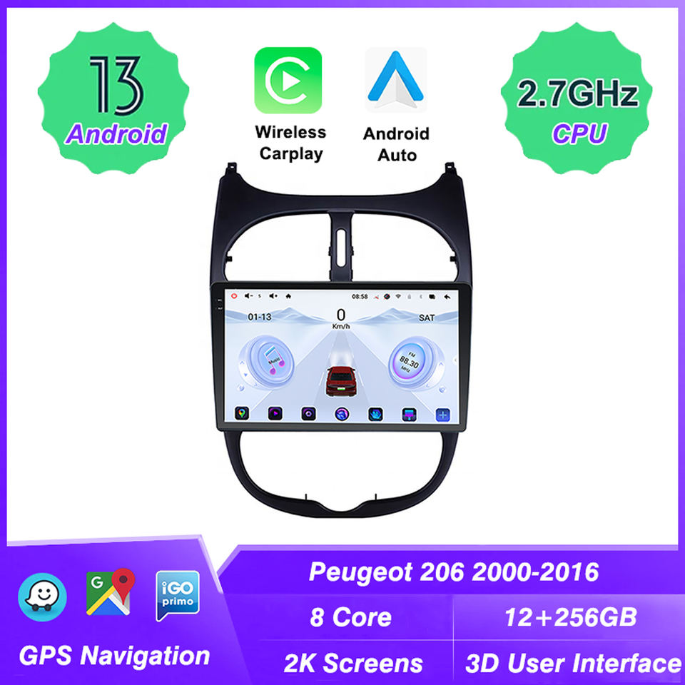 Autoradio multimédia Android Auto pour Peugeot 206 2000-2016, écran 2K, navigation GPS, CarPlay