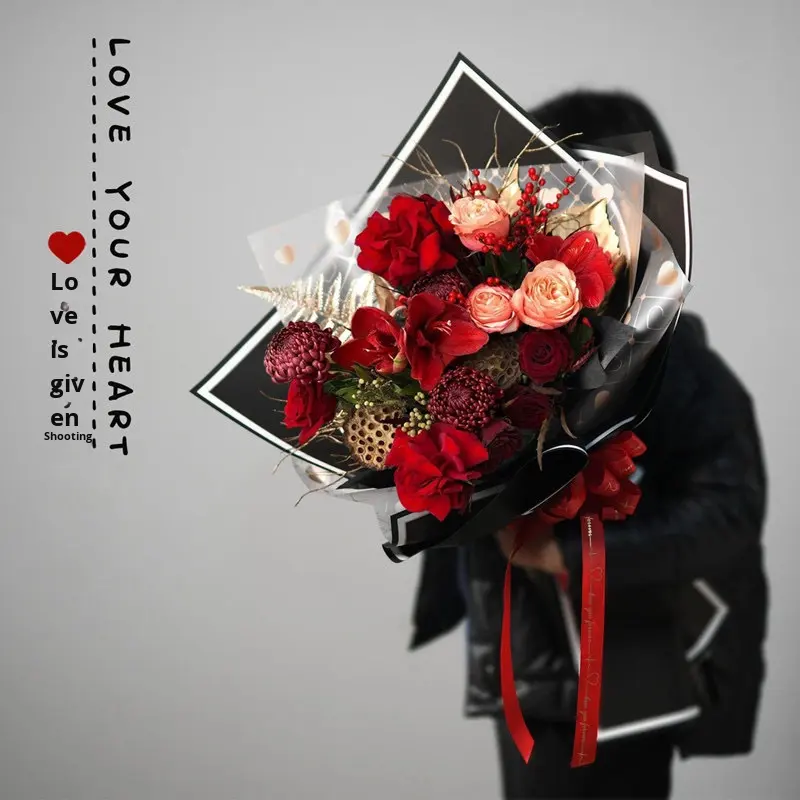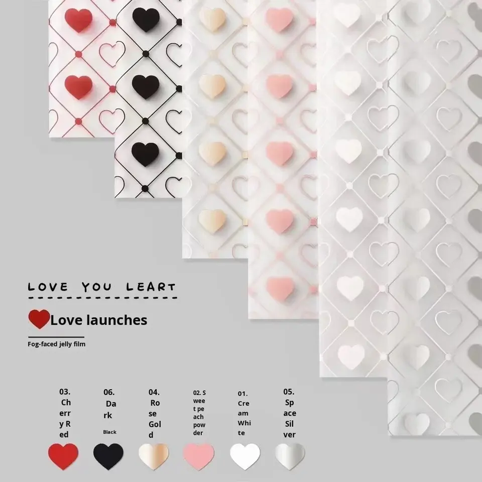 Nouveau Papier d'Emballage Floral Mat Transparent Imprimé à l'Encre Recyclable en Forme de Cœur, Film Gelée Imperméable Love Launcher-Jelly