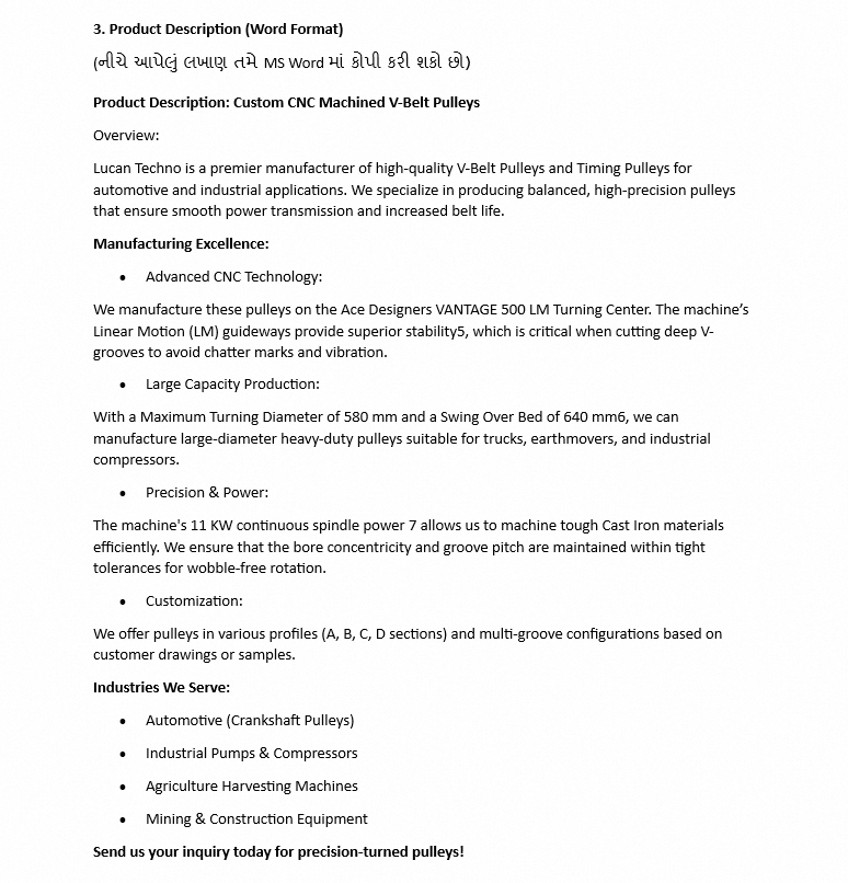 Number of Grooves:Single to Multi-Groove (Custom as per drawing)