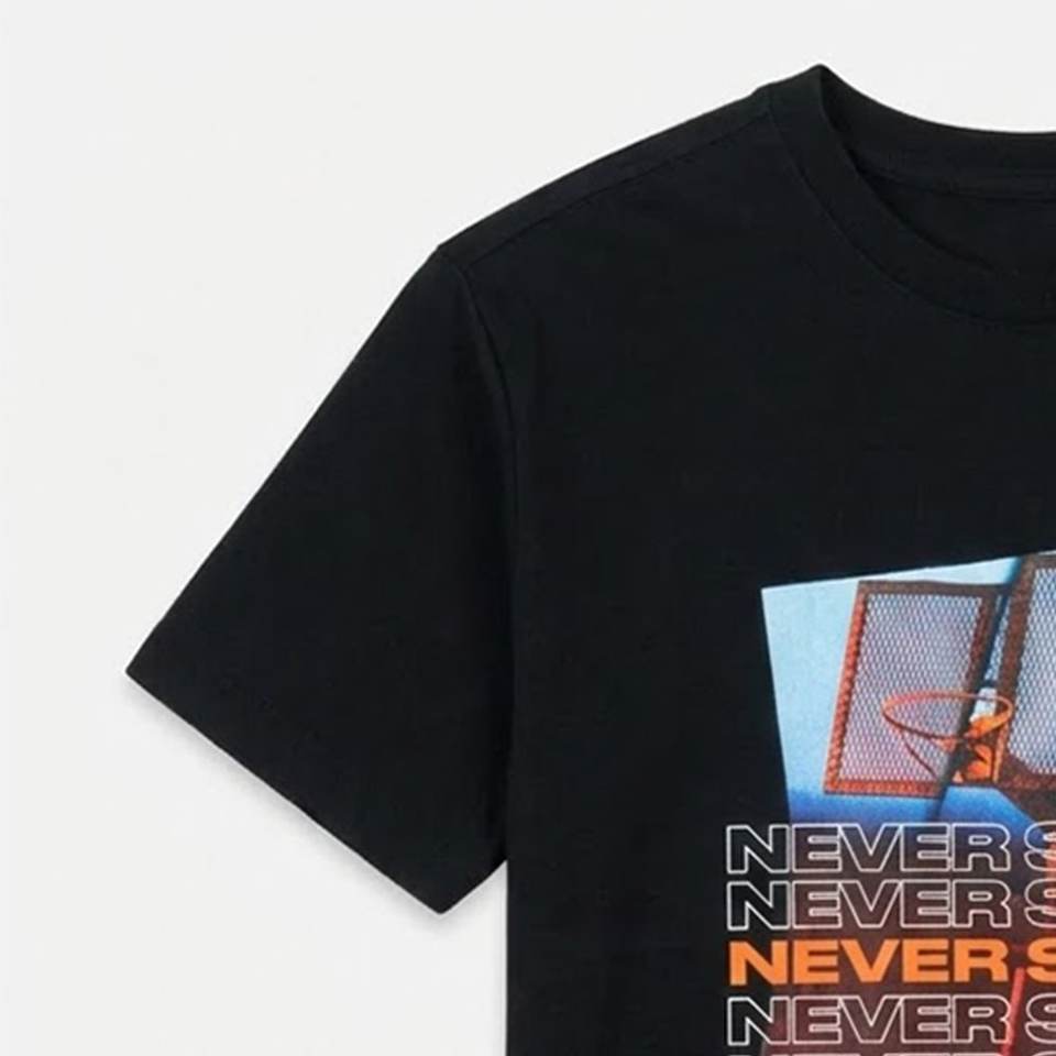 Nouveaux T-shirts noirs pour hommes, personnalisés avec logo imprimé DTF, très demandés, pour vêtements de sport, chemise moderne à col rond, tissu respirant et confortable