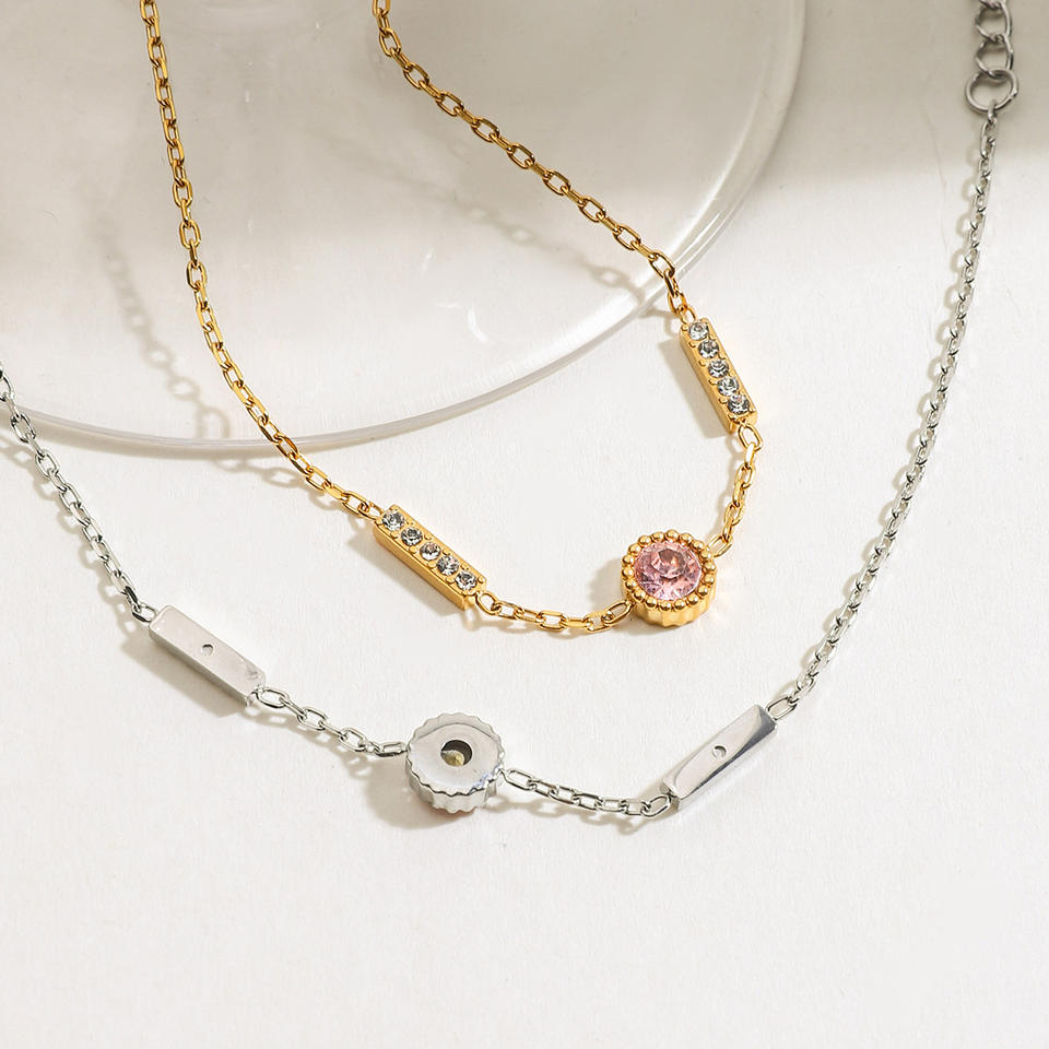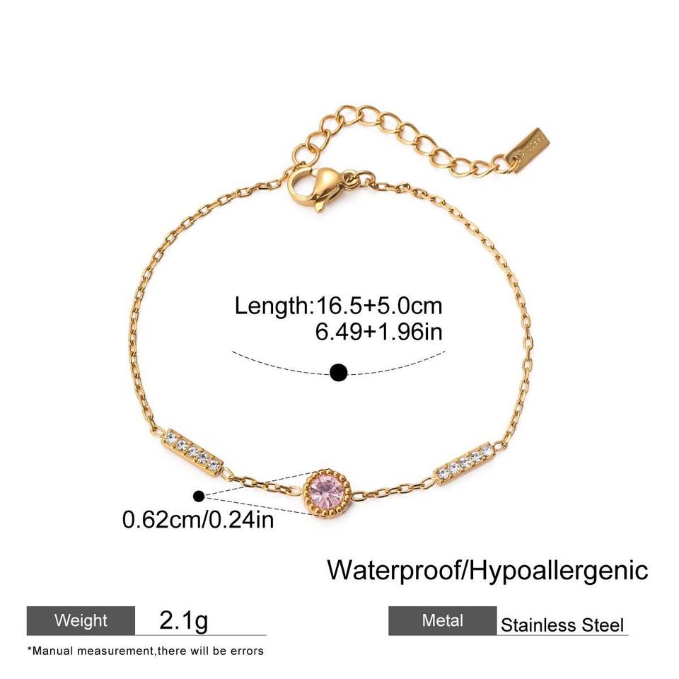 Nouveau bracelet en zircon en acier inoxydable sans ternissement haut de gamme décoré à la main avec du zirconium en titane rose Style tendance et doux