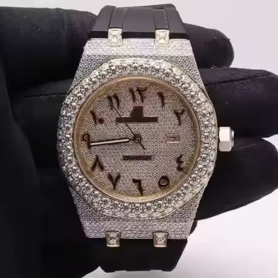 Nouveau mouvement automatique de haute qualité glacé luxe personnalisé Hip Hop Vvs Moissanite diamant montre-bracelet pour hommes femmes