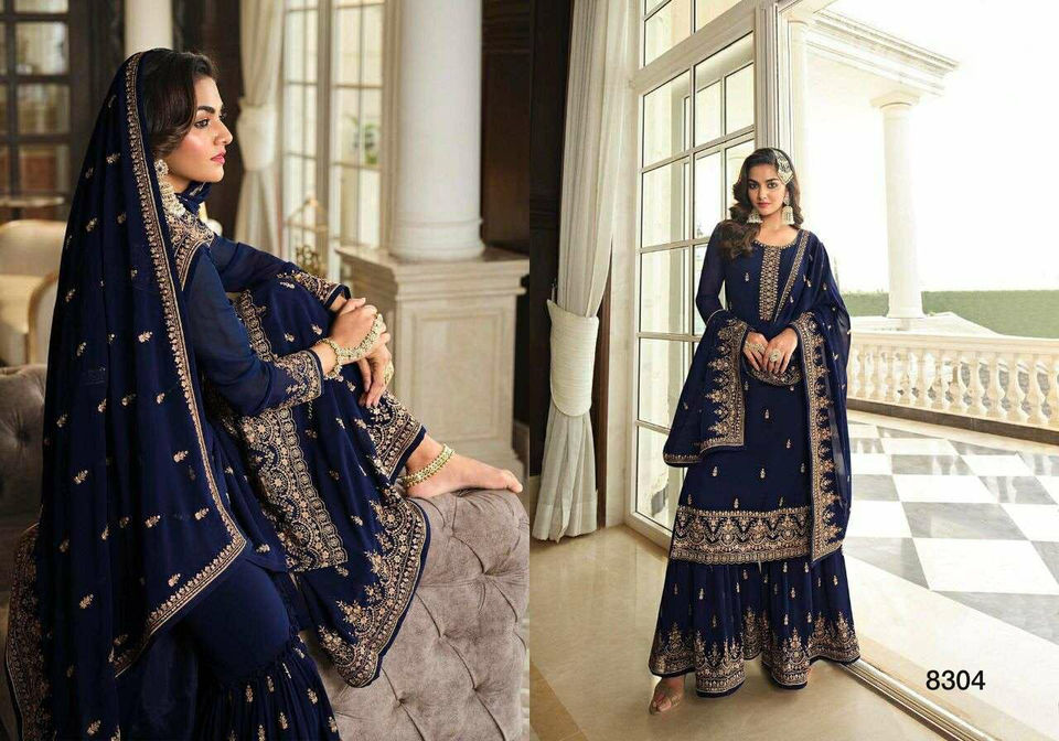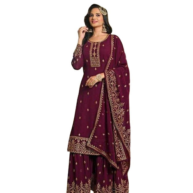 Nouveau Salwar Kameez de style Bollywood de haute qualité en organza pur avec palazzo en viscose de soie et dupatta en filet brodé