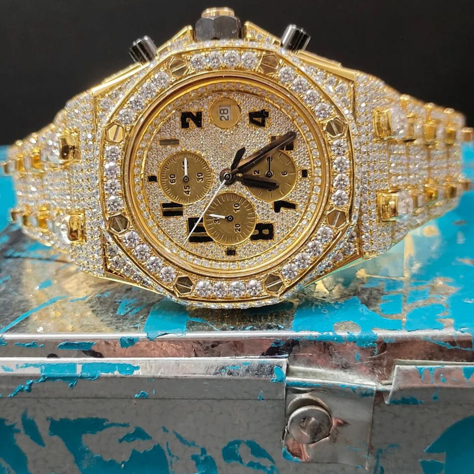 New High Quality Custom Men's Iced Out Moissanite Diamond Studded Water Resistant Analog Glass Dial Hip Hop Watch