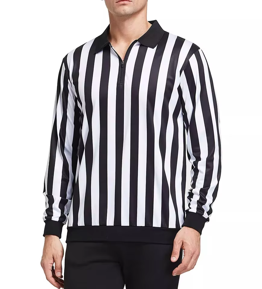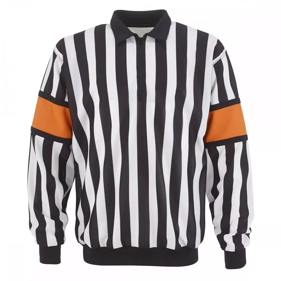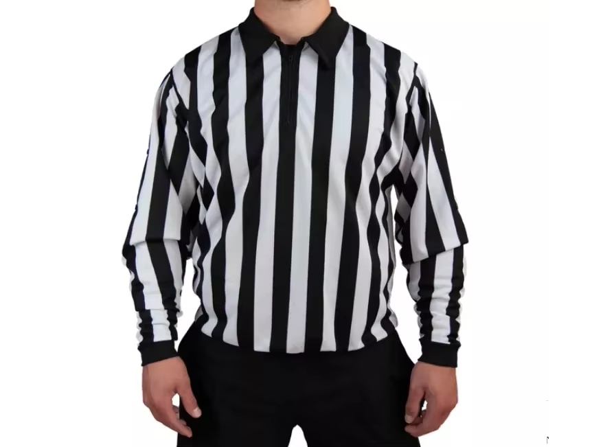 Nouveau maillot d'arbitre de hockey sur glace personnalisé de haute qualité, grande taille, manches longues, en polyester mesh sublimé, antibactérien à l'avant, pour hommes