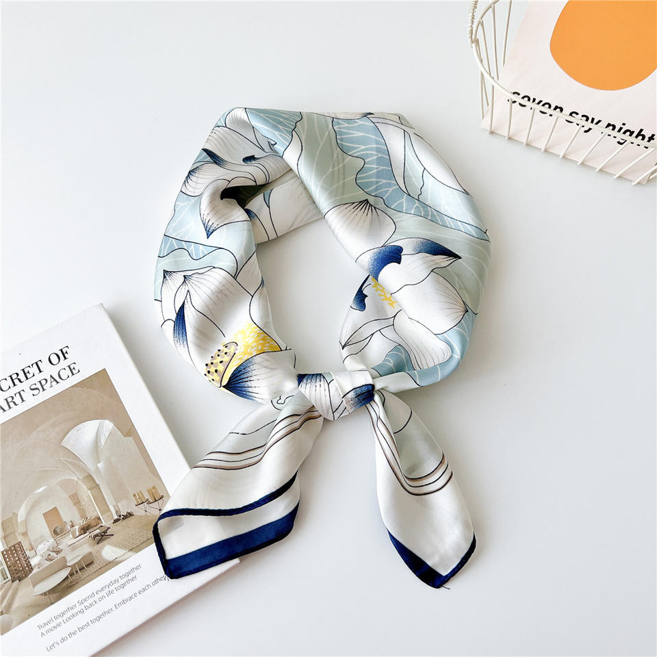 Nouvelle haute qualité jasmin pivoine fleur motif écharpe en gros mode soie-comme les femmes 70 Satin foulards carrés
