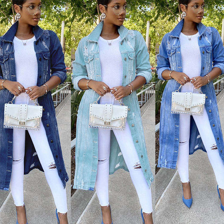 New High Quality Long Denim Jacket Sleeve Casual Jeans Women Jean Jackets for Ladies Jeans For Women