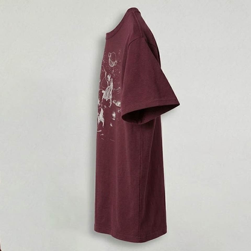 Nouveaux T-shirts pour hommes personnalisés avec logo imprimé DTF, couleur bordeaux, pour un style vintage Highstreet, col rond, tissu respirant et confortable