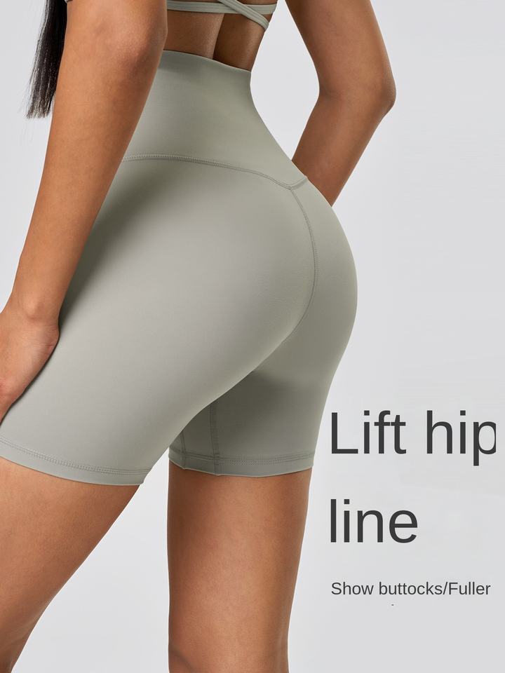 New High Solid Yoga Shorts Women's Naked Sense No Embarrassment Line Tight Sports Summer Fitness Yoga Suit