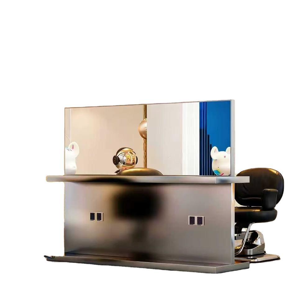 New High-end Internet Celebrity Hair Salon Mirror Table Mirror Hair Salon Hair Cutting Mirror Hair Salon Dedicated with Lighting