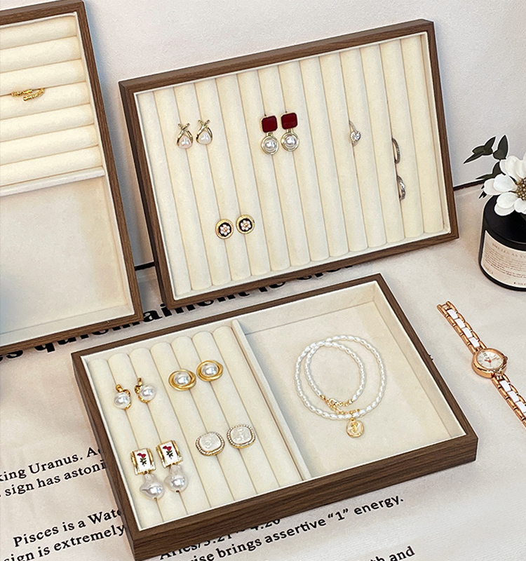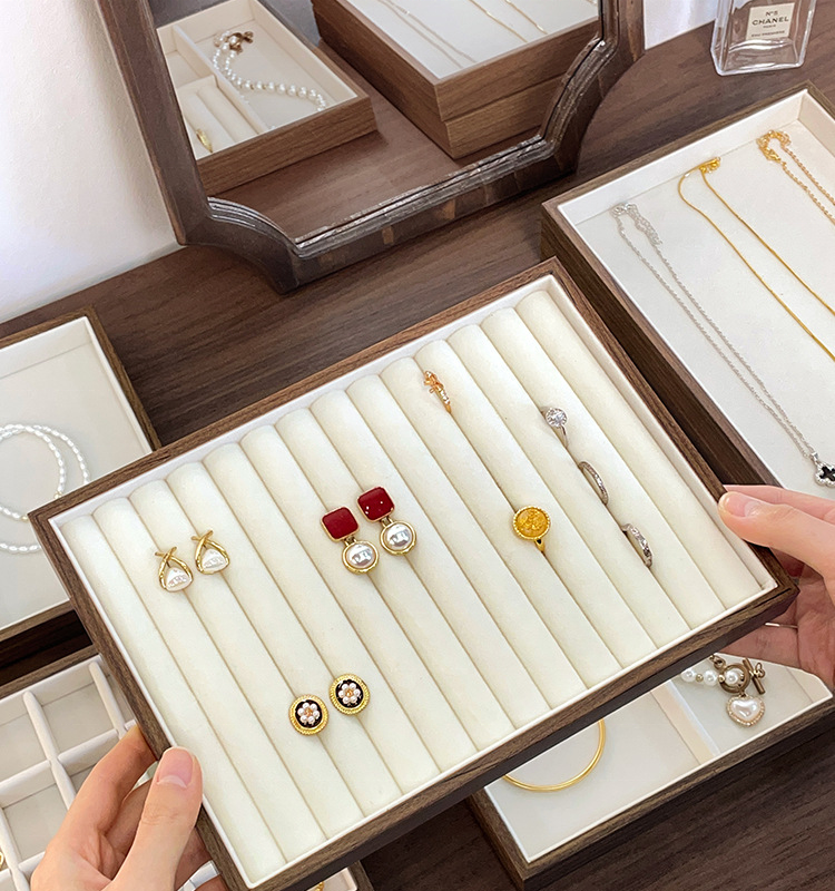 Nouveau haut de gamme lumière luxe noyer bois Grain anneau boucles d'oreilles collier Bracelet bijoux affichage plateau de rangement