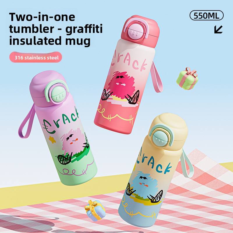 Nouvelle Tasse Thermos Isotherme de Haute Qualité en Acier Inoxydable 316, Motif Dessin Animé, pour Étudiants et Enfants