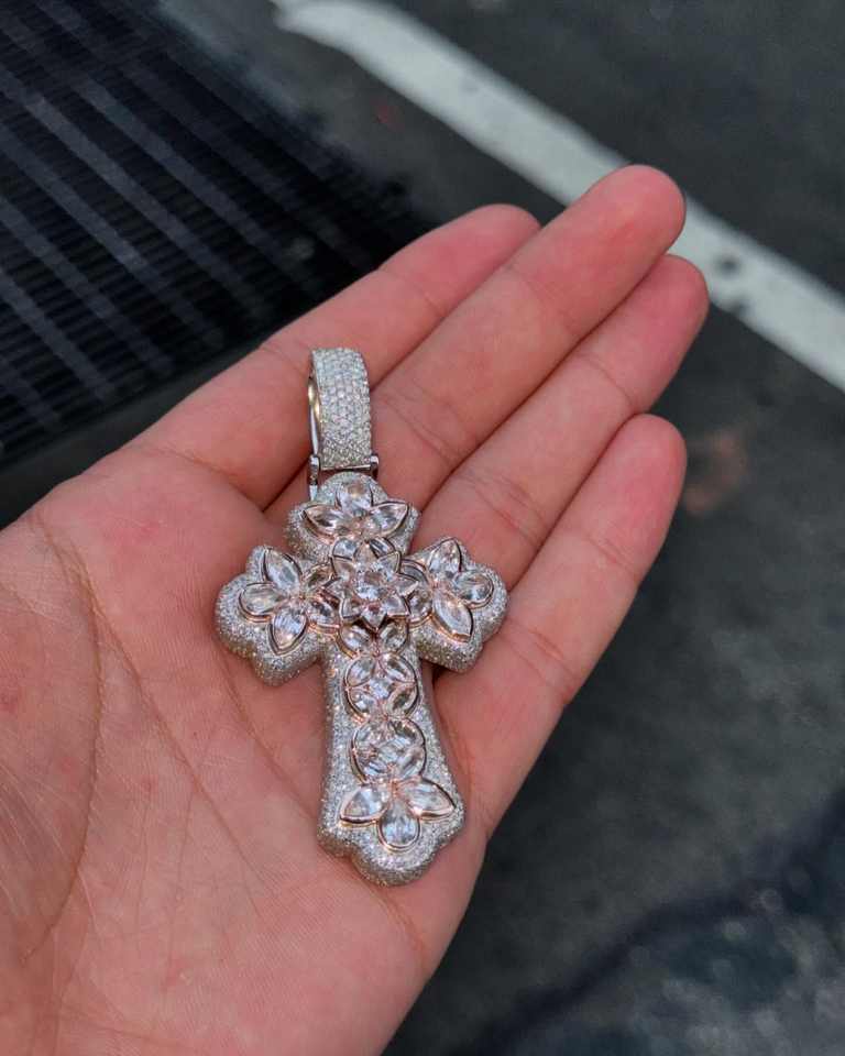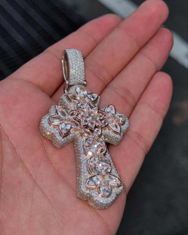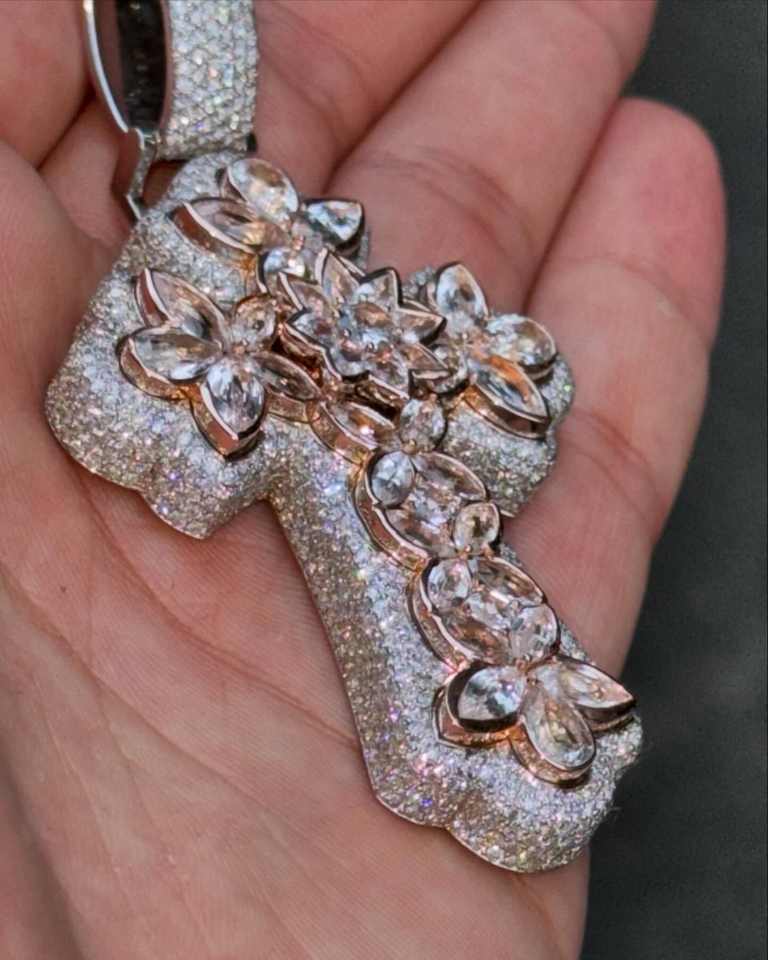 Nouveau Pendentif Croix Hip Hop avec Breloques Coupe Princesse, Diamant Simulé, Argent 925 Plaqué Or Jaune 14K, Moissanite
