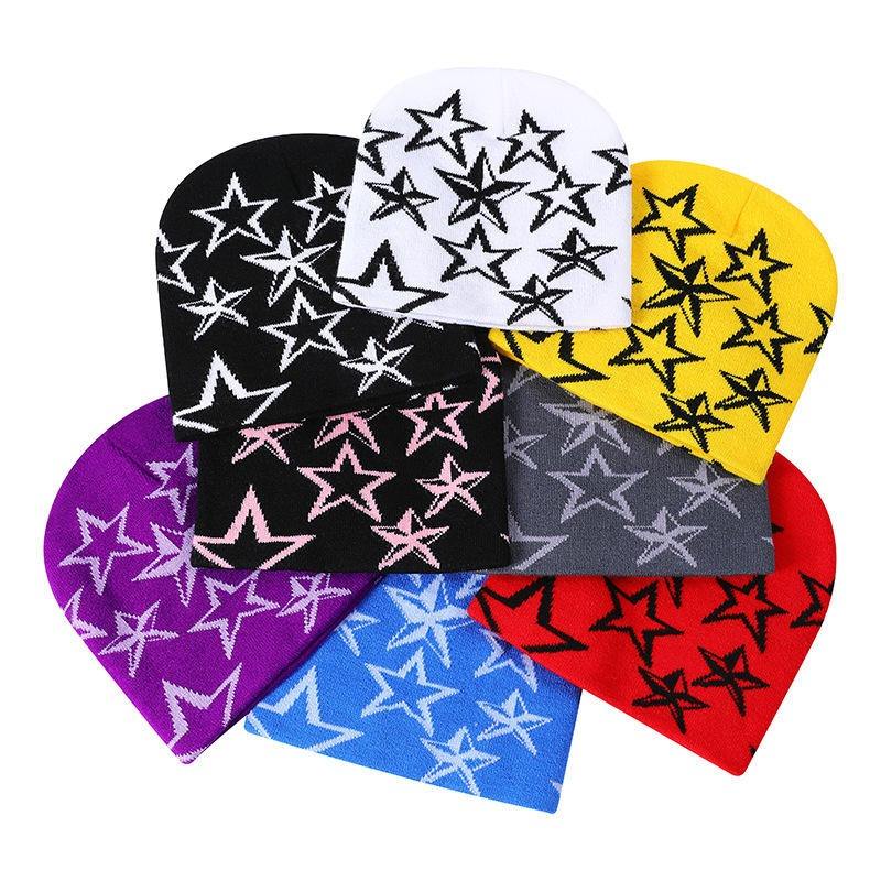Nouveau Hip Hop Street Personnalisé Cold Hat Tricoté Jacquard Cinq Coins Étoile Bonnet Réversible