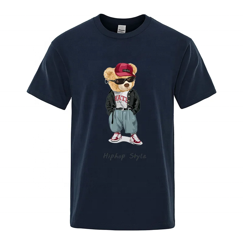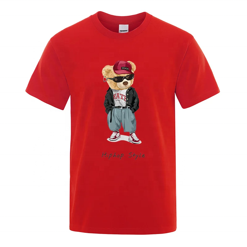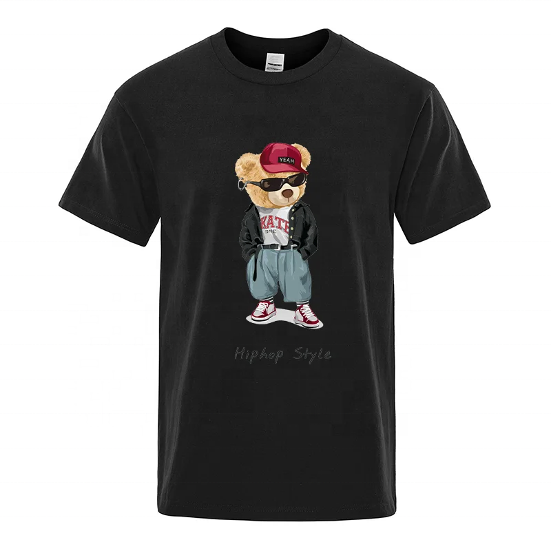 Nouveau Style Hip Hop ours en peluche imprimé décontracté haut d'été col rond manches courtes hommes graphique coton T-shirts mode Street Wear