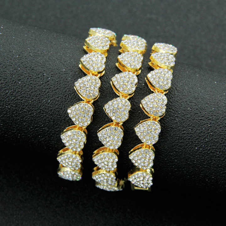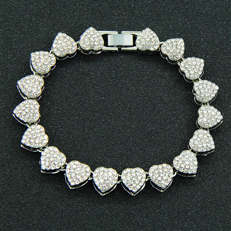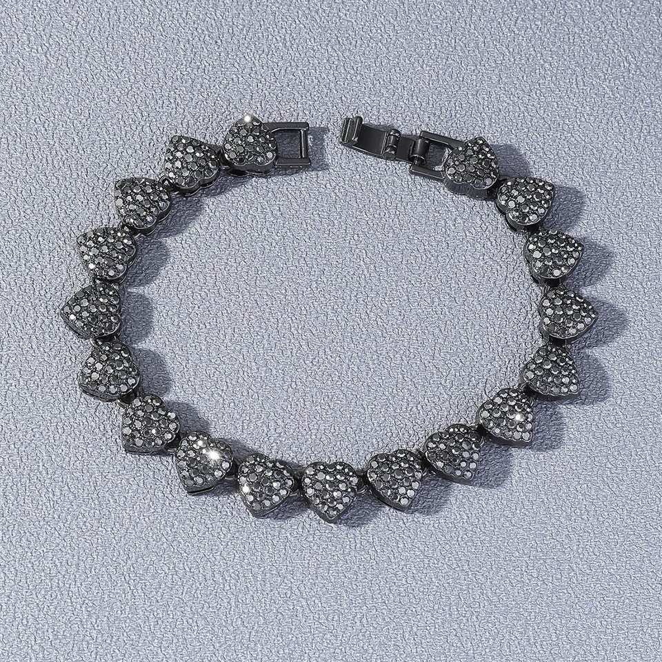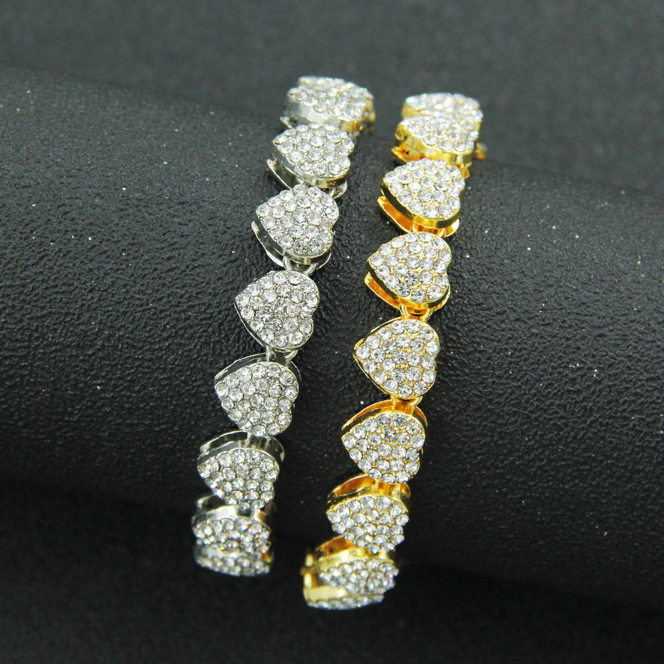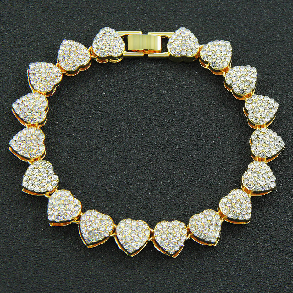 Nouveau bracelet en alliage de style hip-hop avec strass en forme de cœur, tendance luxe léger, pour hommes et femmes, bijoux en gros