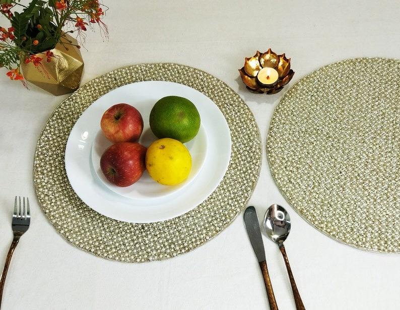 Nouveaux dessous-de-plat décoratifs élégants en verre rond fait maison pour table à manger, nouveau design fantaisie, dessous-de-plat brodés